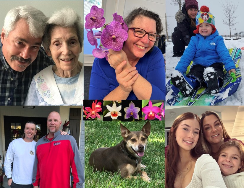 These are the people who have filled my life over the years. Included are some of my favorite things – orchids and pets. We have felt the recent loss of my mother-in-law; she made it to ninety years old. Left this world for the next in April 2024, about a week after her birthday.